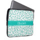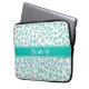 Aqua Turquoise Stars White BG, Teal Name Monogram Laptop Sleeve