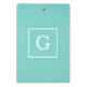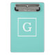 Aqua Turquoise White Framed Initial Monogram Mini Clipboard