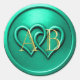 Aqua Two Hearts Intertwined Monogram Wedding Classic Round Sticker