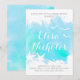 Modern abstract aqua blue watercolor splash with starfish and seagulls beach wedding bridal shower invitation featuring a hand painted watercolor paint splash with texture in tones of aqua blue and turquoise, two starfish and seagulls in white and text in white and grey. This elegant and stylish casual wedding design is a completely customizable template perfect for your summer beach or destination wedding. Note that this is only an image of watercolor and not real texture. For best results choose paper with texture.