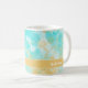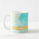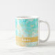 Savour your moments with our Watercolor Splatter Mug in tropical aqua / turquoise blue and sandy yellow. This mug features a customizable name in a modern and elegant font, both on the front and back, adding a unique and sophisticated touch to your daily ritual. The perfect personalized gift for family, friends, and colleagues, indulge in the artistry of everyday life with this chic and stylish drinkware.