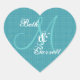 Aqua Wedding Damask Monogram Any Initial V12 Heart Sticker