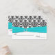 Aqua, White and Black Damask Placecards