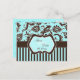 Aqua White Brown Striped Damask Save the Date Card