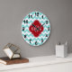 Aqua White Chevron Cranberry Quatrefoil 3 Monogram Large Clock