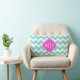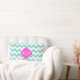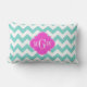 Aqua White Chevron Hot Pink Quatrefoil 3 Monogram Lumbar Pillow