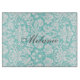 Aqua White Damask Custom Name Cutting Board