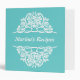Aqua, white rose motif with ribbons recipe binder that features beautiful roses with ribbons in Victorian-Art Nouveau style on turquoise background. This elegant floral design uses a vintage flower element in a contemporary way. It is a completely customizable template design that can be personalized.