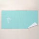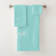Modern simple elegant white script signature name aqua blue sea glass bath towel set.