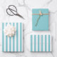 Coordinating gift wrap for all occasions. This is a simple stripes pattern in a aqua and white all-over print. There are two sheets with stripes and one solid aqua