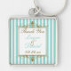 Aqua, White Stripes Gold Scrolls Wedding Favour Keychain