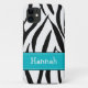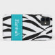 This cute girly and stylish aqua blue zebra print and animal print design with black and white stripes and a turquoise PRINTED stitched ribbon look design can be personalized with your name. Artwork © Chrissy H. Studios, LLC. All Rights Reserved.