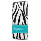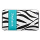 This cute, stylish and trendy custom zebra print iPod Touch 4g case 4th generation Case-Mate Barely There cover with black and white stripes and a aqua blue stitched ribbon design can be personalized with your name. Artwork © Chrissy H. Studios, LLC. All Rights Reserved.