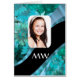 Easily personalize this pretty aquamarine floral flower pattern and swirl design by adding your own photo of your loved one and monogram initials to the templates to make a unique customized product. Visit the PHOTOGIFTZ STORE for matching products. The template photo image text and can easily be replaced with your own, Photographs of the same 4 x 3 dimension should replace the template image exactly. If your photo is of a different dimension you may have to use CUSTOMIZE to adjust the size, of the photo and text, by drag and drop.