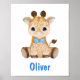 Aquarelle Bébé Giraffe Bleu Garçon Poster