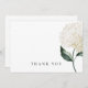 Funérailles, deuil carte de remerciements. Nom de famille et merci sur le dos. Typographie. Aquarelle simple. Floral blanc. Hydrangée blanche.