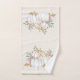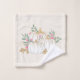 Serviette sertie de citrouilles blancs d'aquarelle fantaisie aux accents de parties scintillant en faux or. Entouré de feuilles verts et de fleurs sauvages roses.