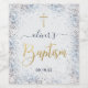 Élégant garçon bleu et or étiquettes de bouteille de baptême. Design avec parties scintillant confetti arrière - plan, croix d'or et script de typographie "Baptême". Cliquez sur customiser plus loin pour modifier/modifier ce modèle.