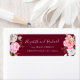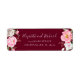 Une élégante étiquette de adresse à fleurs à fleurs roses et à calligraphie manuscrite moderne sur un arrière - plan rouge bordeaux.