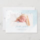 PixDezines Thank you and Birth Announcement for a baby boy with powder blue watercolor background and faux rose gold confetti, accented with butterflies and faux gold pram..