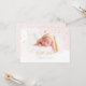 PixDezines Thank you and Birth Announcement for a baby girl with pink watercolor background and faux gold confetti, accented with butterflies and faux gold pram..