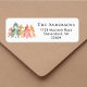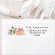 Étiquettes d'adresse de retour simples et élégantes pour votre correspondance de vacances avec une belle aquarelle abstraite de pins en vert sauge muet, rouge, or et orange et votre nom et adresse en typographie moderne simple.