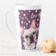 Tasse en latte de bulldog française avec trois frenchies d'aquarelle avec un arrière - plan arrière - plan pourpre. Un cadeau parfait pour un éleveur français de Bulldog ou quelqu'un qui possède et aime les frenchies. Le texte peut être modifié.