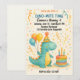 Laissez la fête préhistorique rugir ! Cette invitation à l'anniversaire de dinosaure couleur d'aquarelle, qui n'a pas de sexe, présente un dino joyeux, portant un casquette de fête d'anniversaire et prêt à célébrer dans le style. Avec son charme peint à la main et son ambiance festive dans les tons vert, orange et bleu, il conviendra parfaitement aux enfants de 1 à 12 ans. La conception de carte plat 5x7 est facile à customiser et à envoyer. Personnalisez les détails de votre fête et préparez-vous à piquer, à chomper et à célébrer!