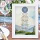 Tableau des sièges de table de mariage de montagne avec le nombre et la liste des invités. Aquarelle pittoresque dans les tons bleu et vert poussiéreux. Le paysage au bord du lac comprend des montagnes, de la verdure et des pins, le lac et un ciel clair. Le numéro de table et la liste des sièges invités sont modifiables et affichés de chaque côté. Si vous souhaitez faire correspondre des produits, veuillez consulter ma collection Mountain Lake.