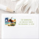 Les vibes d'été retournent les étiquettes d'adresse avec une aquarelle Texas Long Horn sur la plage. Personnalisable .