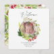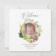 Bienvenue aquarelle faire-part de naissance photo de couronne. Dans le rouge et le vert festif, cette faire-part de naissance d'aquarelle ravira. La couleur Arrière - plan peut être modifiée.