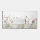 Tapis de bureau avec une aquarelle illustrant les fleurs sauvages de prairie printanière dans de subtiles couleurs muettes. L'illustration est sur un arrière - plan blanc.