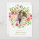 Cette faire-part de graduation florale d'aquarelle a une palette de couleurs rose, corail et vert. Vous pouvez ajouter une photo du grade au début de l'invitation et vous pouvez aussi personnaliser la classe de l'année, le nom du diplômé, et l'école de laquelle ils sont diplômés. L'arrière a un design pois vert simple.