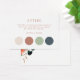 Cette belle carte de code couleur mariage point de robe dispose du texte dans une couleur ocre riche contre un arrière - plan blanc croustillant. La conception comprend 4 points de couleur mariages populaires, qui sont personnalisables à l'aide de l'outil de conception. L'illustration florale colorée au fond, dégage une tonalité joyeuse et une élégance jeune. Deux initiales côte à côte à l'arrière. CONSEIL : Si vous modifiez les points de couleur, n'oubliez pas de modifier le remplissage ainsi que la couleur de bordure pour qu'elle corresponde. Des variantes de cette conception sont disponibles dans la même collection.