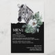 Aquarelle Floral Wild Zebra Safari Menus Mariage dispose d'une élégante aquarelle zèbre sauvage avec des fleurs d'aquarelle sur un arrière - plan noir et blanc avec vos informations de menu ci-dessous. Personnalisez en modifiant le texte dans les zones de texte. Conçu pour vous par Evco Studio www.zazzle.com/store/evcostudio