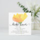 Cette invitation à la douche nuptiale présente une belle fleur d'aquarelle jaune dans la arrière - plan et les détails de la douche nuptiale au premier plan.