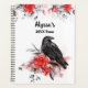 Ce planificateur de calendrier gothique a votre nom monogrammé dans un script cursif moderne et des illustrations d'aquarelle d'un corbeau mystérieux et de roses rouges sur un arrière - plan blanc. Vous aimerez ce corneille noire, design imaginaire fleuri. Des articles de coordination sont disponibles dans notre boutique.