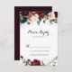 Ces cartes RSVP florales illustrées à l'aquarelle sont parfaites pour un mariage simple. Le design est composé d'une aquarelle artistique peinte à la main bleu marine, bordeaux, rouge, roses roux et pivoines avec d'élégants feuilles verts, inspirant la beauté idyllique colorée de l'automne.