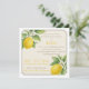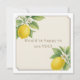 Fraîche, vibrante et pleine de zeste ! Cette invitation à l'anniversaire carré présente des citrons aquarelle peints à la main avec des feuilles verts, apportant une touche méditerranéenne éclatante à votre célébration. Idéal pour une fête à thème limoncello, un anniversaire d'été, une réunion de jardin ou un événement d'inspiration italienne. Entièrement personnalisable avec les détails de votre événement, ce design donne le ton pour une journée joyeuse et ensoleillée. Imprimé sur un carton de haute qualité avec des couleurs vives et des détails.