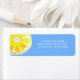 Ce étiquette de retour est composé d'une moitié citron et d'un arrière - plan bleu.