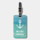 Aquarelle bleu turquoise d'ancre nautique m et mrs étiquette bagages de voyage. Étiquette couleur eau personnalisé pour sacs et valises. ancre bateau patiné / bateau avec typographie vintage. Une idée de cadeau maritime élégante pour les hommes et les femmes. Nom personnalisable Très beau cadeau de faveur pour mariage à thème de plage. M. et Mme Design.