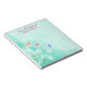 Joli bloc-notes design fait en vert menthe d'aquarelle, avec des fleurs blanches blanches. Le haut a du texte personnalisé prêt à être personnalisé.