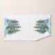 Une élégante serviette blanche en coton sertie de sapins couverts de neige.
