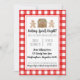 Cette précieuse invitation d'échange de biscuits de Noël comporte un plaid rouge aquarelle avec pain d'épices couleur garçon, fille et maison. L'arrière est orné d'un arrière - plan rayé rose et blanc avec des motifs en pain d'épices aquarelle qui correspondent aux fournitures de fête disponibles dans notre boutique. Dit "Baking Spirits Bright ! Rejoignez-nous pour une joyeuse passe-temps de biscuit de Noël" (ou personnalisez-vous avec un dicton différent). Ajoutez tous les détails de votre fête.