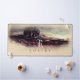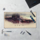 OEuvre d'aquarelle de l'automne à la campagne monogrammed Desk Mat d'une scène naturelle présente deux beaux arbres dans le paysage au coucher du soleil.
