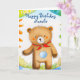 Une carte d'anniversaire avec un ours en peluche peint à la main.