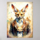 Aquarelle Peinture humaine avec Fox Face Poster