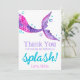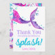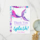 Cette aquarelle vous remercie design comprend une queue de sirène et des bulles. Au fond du design se trouve un motif de sirènes avec beaucoup de sirènes et de créatures marines différentes. Ce design est idéal pour une fête d'anniversaire de petite fille à la plage, une fête de piscine ou juste une fête d'été sur le thème des sirènes. Vous pouvez customiser tout le texte. Voir l'ensemble de la collection de fêtes de correspondance.