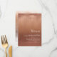 Ce menu moderne de réception de mariage est légèrement informel, chaleureux et personnalisé, et présente un design abstrait et aquarelle ressemblant à des reflets sur l'eau. Cet exemple présente une palette de couleurs dégradées allant de la pêche pâle à la terre cuite foncée. Personnalisez avec les initiales de la mariée et du marié, la date du mariage et les détails en utilisant le modèle fourni. Recherchez ID774 pour voir l'ensemble complet de correspondances et les options de couleurs supplémentaires.