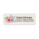 Étiquettes de adresse avec un bouquet floral fantaisiste avec roses aquarelles. Elégant, fantaisiste et créatif. Un ensemble de roses en rose, violet et jaune. Avec beaucoup de sprigs et feuilles en vert, rose, violet et bleu. L'Arrière - plan est de couleur champagne blanc cassé.